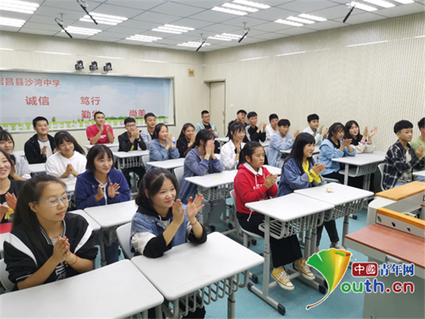 图为同学们为开学第一课鼓掌。天津大学研支团 供图