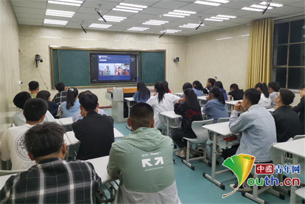 赵书航讲述新中国发展历史和战疫故事,带领同学们感受青年的奋斗力量。天津大学研支团 供图