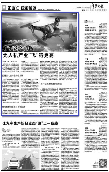“《条件》还将进一步打通无人机产业上下游资源产业链的整合,促进大小企业‘抱团’,推动民用无人机行业集群发展。” 齐俊桐说。本报记者 叶 青 通讯员 肖 玲