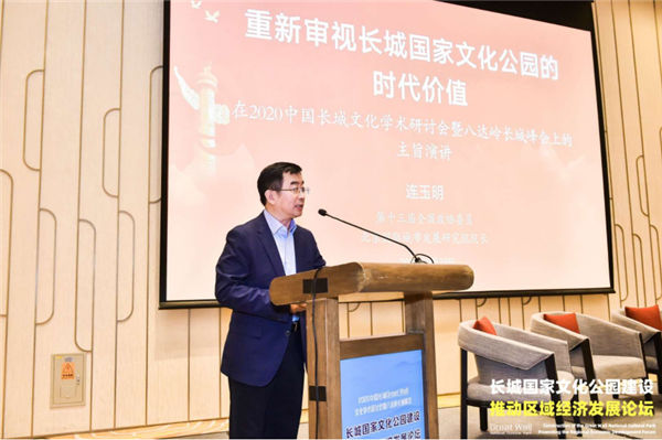 会上,北京国际城市发展研究院院长连玉明发表了题为《重新审视长城国家文化公园的时代价值》的主旨发言,提出了六个基本观点:第一,长城重在彰显国家文化。第二,在把握国家公园本质属性中,强化长城保护。第三,长城国家文化公园是一项具有世界意义的国家工程。第四,加快制定长城国家文化公园建设的“负面清单”。第五,把“长城脚下的美丽乡村”纳入总体规划战略布局之中。第六,牵手冬奥会,打好长城牌。