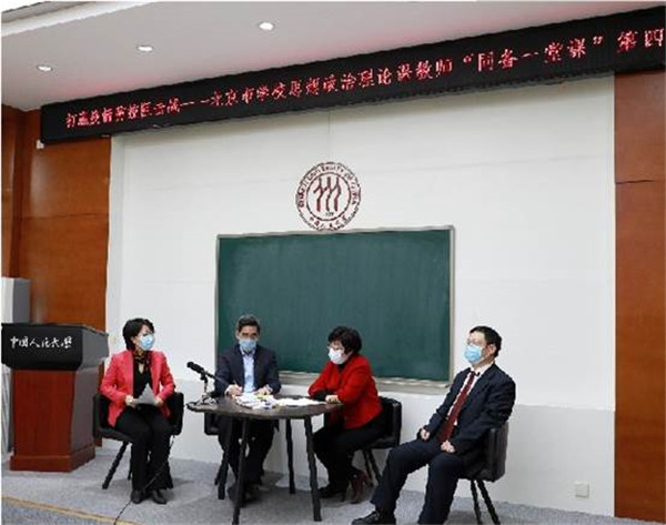 中国人民大学打造线上“思政金课”。“思政云课堂”教学除依托中国人民大学马克思主义学院高水平师资队伍外,同时汇聚全国思政课领域优秀师资力量。学校大力加强“习近平新时代中国特色社会主义思想概论”课程建设,录制119讲微视频,全部由北京高校思想政治理论课名师工作室主持人、北京高校思想政治理论课特级教授和特级教师等百余位专家名师讲授,内容丰富全面。