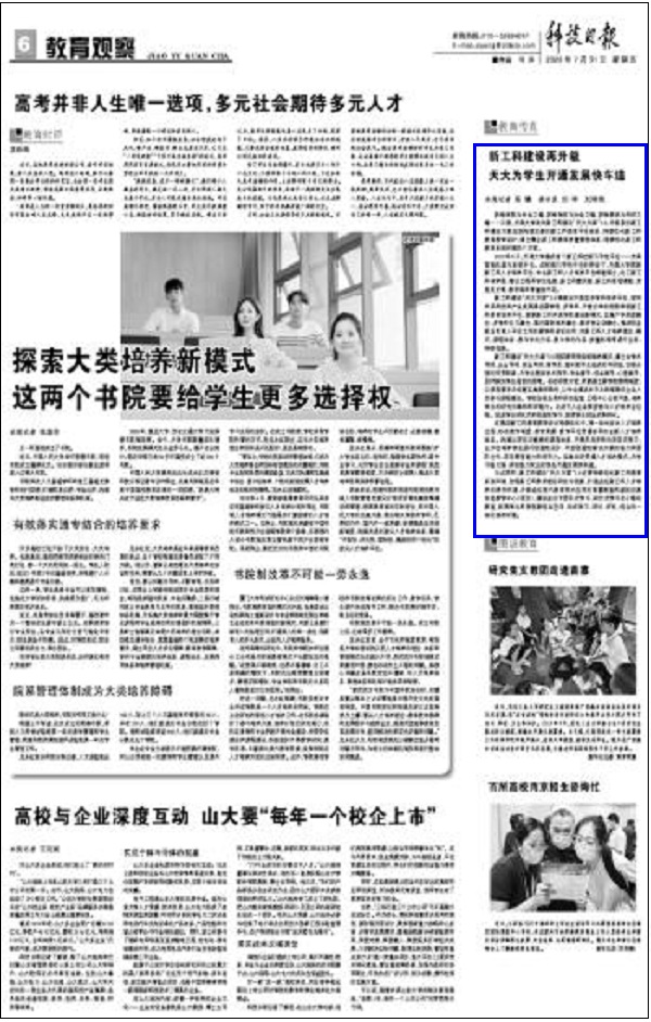 新工科建设“天大方案”2.0将探索导师组制培养模式,建立由学术导师、企业导师、创业导师、辅导员、高年级导生组成的导师组,实现合理的师资配备,为学生提供学术指导、学业督导、创业辅导、心理疏导,及时解决学生遇到的困难。而在师资方面,则要建立跨学院联聘制度,以课程要求为依据实施教师聘任,以专业建设水平为标准聘任企业人员参与课程建设。学校各级各类科研实验室、工程中心全面开放,培养学生的研究兴趣和科研能力。主动引入企业深度参与人才培养全过程。促进学生研究式和创造性学习,促使学生创业成果转化。