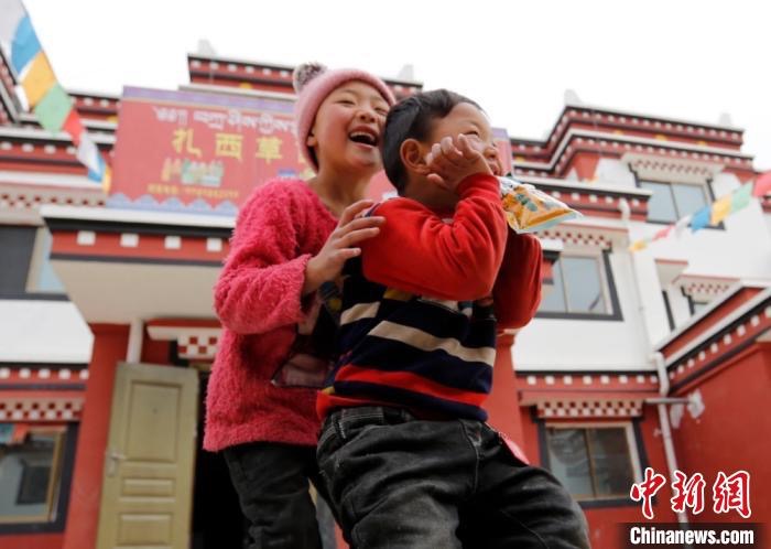 图为藏族孩童在搬迁后的新家玩耍。(资料图)杨丽君 摄