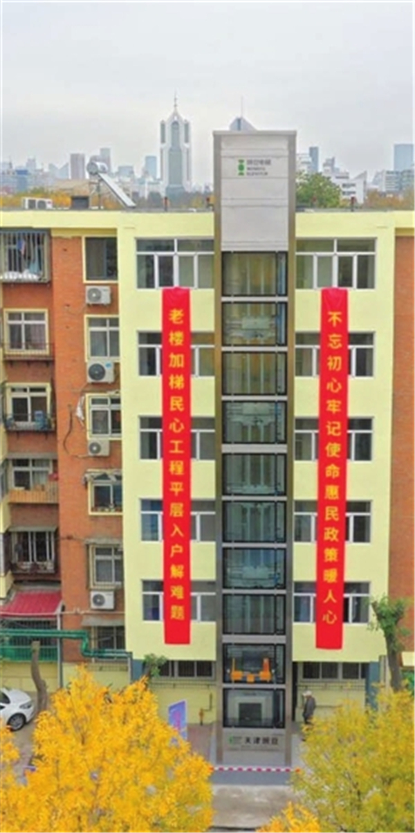 “上下楼梯,是居民出行的第一步,也是回家的最后一步,看似事情虽小,但却与人民群众的幸福感和获得感密切相关。”南开区住建委副主任赵元来表示。目前,南开区已建成两部既有住宅加装电梯,分别为天大六村25号楼4门平层入户的加装电梯、南大西南村62号楼2门的错半层入户的加装电梯。“希望能在全市推广树立样本、积累经验,特别是错半层入户更适合老旧楼房加装电梯实施模式,优点在于占地少、改建少、工期短,施工难度相对较小,对楼体结构和周围环境要求较低,更适合推广。”