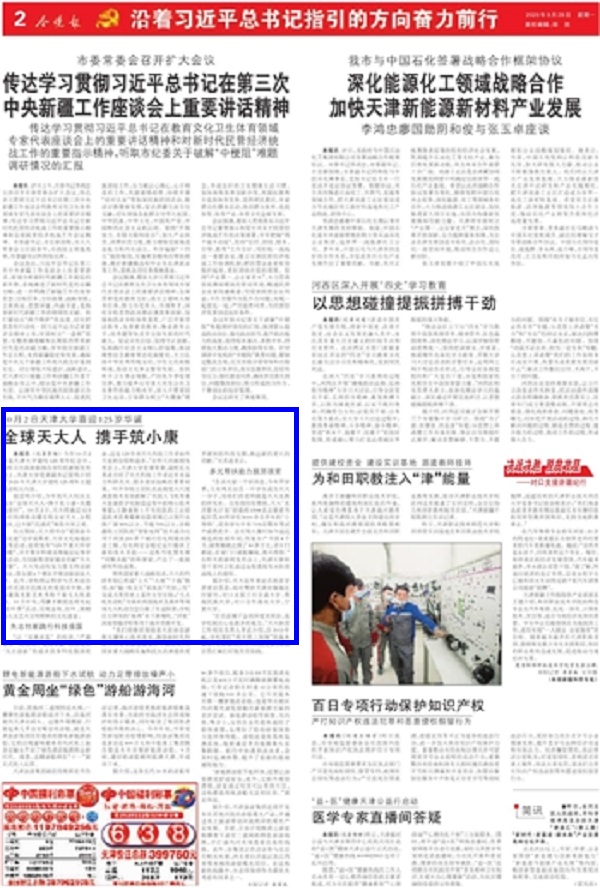 据介绍,天大近年来定点扶贫甘肃省宕昌县,结对帮扶天津市静海区付家村,对口支援兰州交通大学、青海民族大学,对口合作海南大学、宁夏大学。
