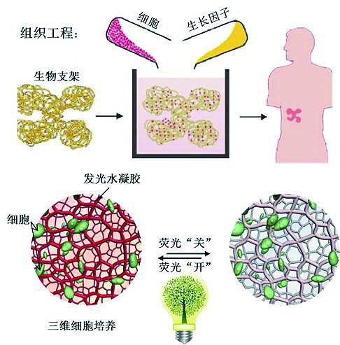 三维细胞培养技术是目前人类再造人体组织和器官的主要手段。“如果说细胞是一粒种子,而我们研制的新型水凝胶就好像肥沃的土壤,不仅为种子的生长提供牢固的根基和充足的养分,同时也创造了一种发光环境,为更好地观察种子生长提供便利。”仰大勇介绍。