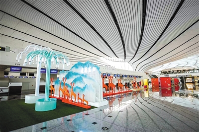 南海子是麋鹿的科学发现地、本土野外灭绝地和重引入地,为了展现麋鹿曲折生动的历史变迁,大兴区在大兴国际机场航站楼4层举办麋鹿东归主题巡展。游客明年1月底前都可在北京大兴国际机场观看到麋鹿东归展览。