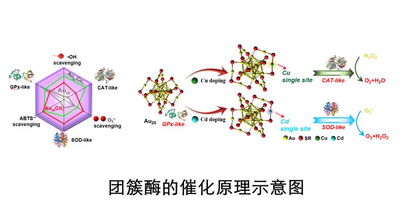 天津大学团队在国际上首次提出“团簇酶”概念,他们通过单原子调控的方法成功设计出一类具有原子精确结构的人工酶——“团簇酶”。实验证明,“团簇酶”具有高催化活性和选择性,其抗氧化活性是天然水溶性维生素E的160倍,是花青素分子的9倍。生物学结果显示,使用“团簇酶”制剂能有效减轻脑损伤小鼠的神经炎症,显著降低病鼠体内的炎症因子。特别值得一提的是,“团簇酶”尺寸超小,能通过肾脏自然滤除,这也意味着使用“团簇酶”药物可以避免对肝肾等器官的副作用损伤。