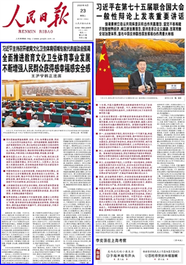 《人民日报》 2020年9月23日 01版头条