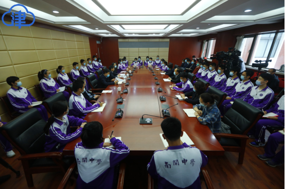 16日下午,舒启明到天津市南开中学宣讲党的十九届五中全会精神,与师生代表进行互动交流。