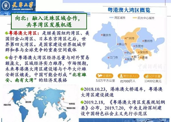 融入泛珠区域合作,共享湾区发展机遇。粤港澳大湾区是继美国纽约湾区、美国旧金山湾区、日本东京湾区之后的“世界第四大湾区”,是国家建设世界级城市群和参与全球竞争的重要空间载体。由于粤港澳大湾区经济总量与对外贸易额庞大、区域经济实力雄厚,市场预期未来粤港澳大湾区建设堪与“千年大计”雄安新区媲美,中国可能会形成“北有雄安、南有大湾”的经济发展格。