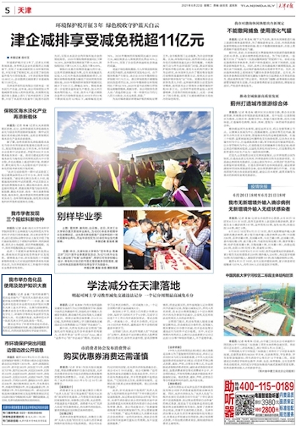 本报讯(记者 姜凝)“如何检查燃气用具是否漏气?”“使用灭火器扑救火灾时要对准火焰哪里喷射?”……日前,第三届天津市危险化学品使用及防护知识大赛在天津工业大学举办。比赛为团体赛制,参赛者来自全市部分高校及研究院所的化学化工、环境科学等相关专业的学生及研究人员。经过激烈角逐,天津师范大学一队和天津大学代表队获得一等奖。