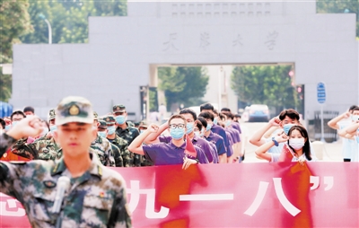 本报讯(记者李杨 通讯员焦德芳)“我宣誓:作为新时代的天大学子,要以实现中华民族伟大复兴为己任,增强做中国人的志气、骨气、底气,不负时代,不负韶华!不负党和人民的殷切期望!”九一八事变爆发90周年这一天,天津大学师生齐聚北洋广场,通过一场别开生面的“国旗下的宣讲”,从历史中汲取奋进的力量。