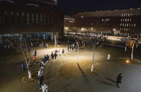 本轮核酸检测从凌晨1:30持续到7:30,共有15000余名学生参加检测。检测地点位于北洋园校区体育场。夜间最低气温下降到了零下8摄氏度。医务工作者、学生志愿者、老师们提前到达现场准备。