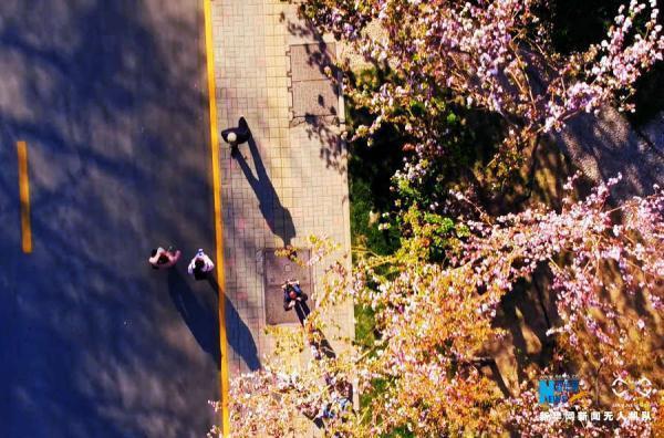 铭德道上的海棠花进入了盛放期。(新华网张博摄)