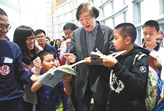 羊城晚报记者 邓勃 摄 演讲后,冯骥才为小读者签名