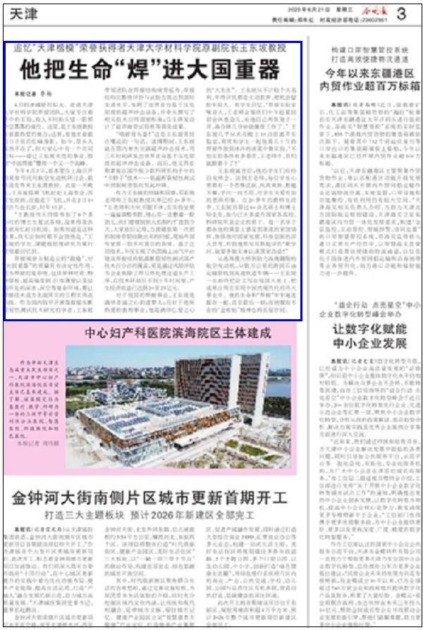 从港珠澳大桥到助力战鹰翱翔的航空发动机,从数万公里的跨国石油运输管线到高速轨道车辆……王东坡一生始终把论文写在祖国大地上,把成果应用在实现中国式现代化的伟大事业中。他的生命和“焊接”牢牢地连接在一起,直至最后一刻;而他锲而不舍的“金刚钻”精神也将长留世间。