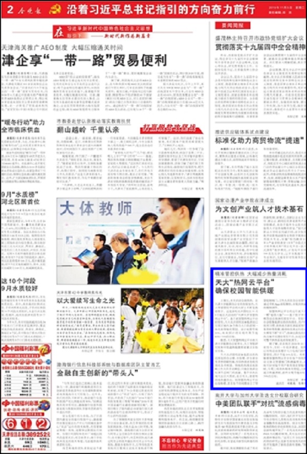 据悉,天大智慧热网云平台由天津大学能源办公室牵头,人工智能研究院和中低温热能教育部重点实验室实施。