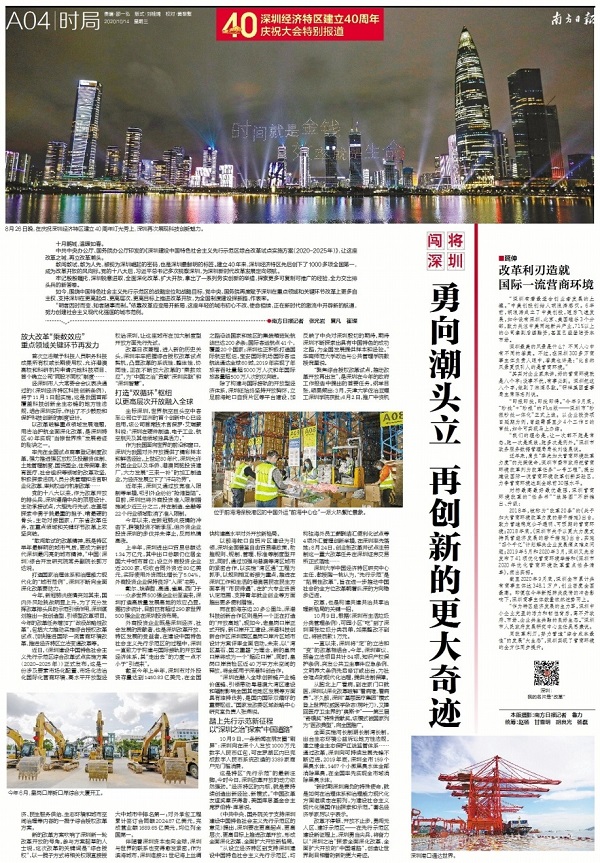 “敢闯敢试的改革精神,既是经济特区早年最鲜明的城市气质,更成为新时代深圳最闪亮的城市精神。”中国(深圳)综合开发研究院常务副院长郭万达说。