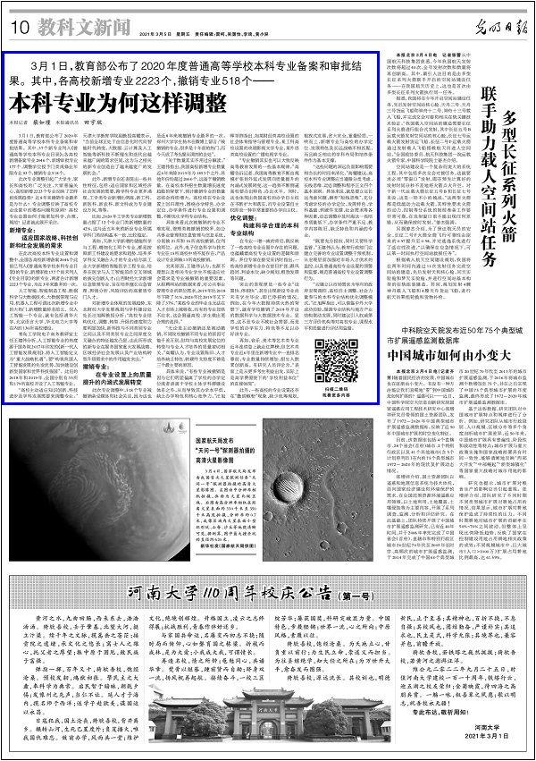 “高校主动适应知识创新、科技进步及学科发展需要来调整专业。”天津大学教育学院副教授高耀表示,“当前全球正处于由信息化时代向智能时代转变,大数据、云计算及人工智能等新科技不断催生和迭代出越来越广阔的需求空间,这为与之相关的新专业创造出了越来越宽广的发展机会。”