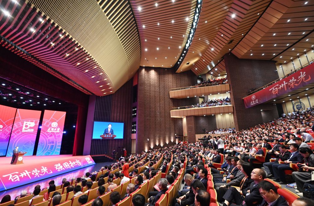 这是10月2日拍摄的天津大学(北洋大学)建校130周年高质量发展大会现场。当日,天津大学(北洋大学)建校130周年高质量发展大会在北洋园校区求实会堂举办,海内外校友、各界来宾欢聚一堂,共同回望百卅历程。新华社记者 李然 摄