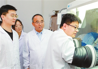 胡文平院士(右二)指导学生实验。 记者 吴涛 摄