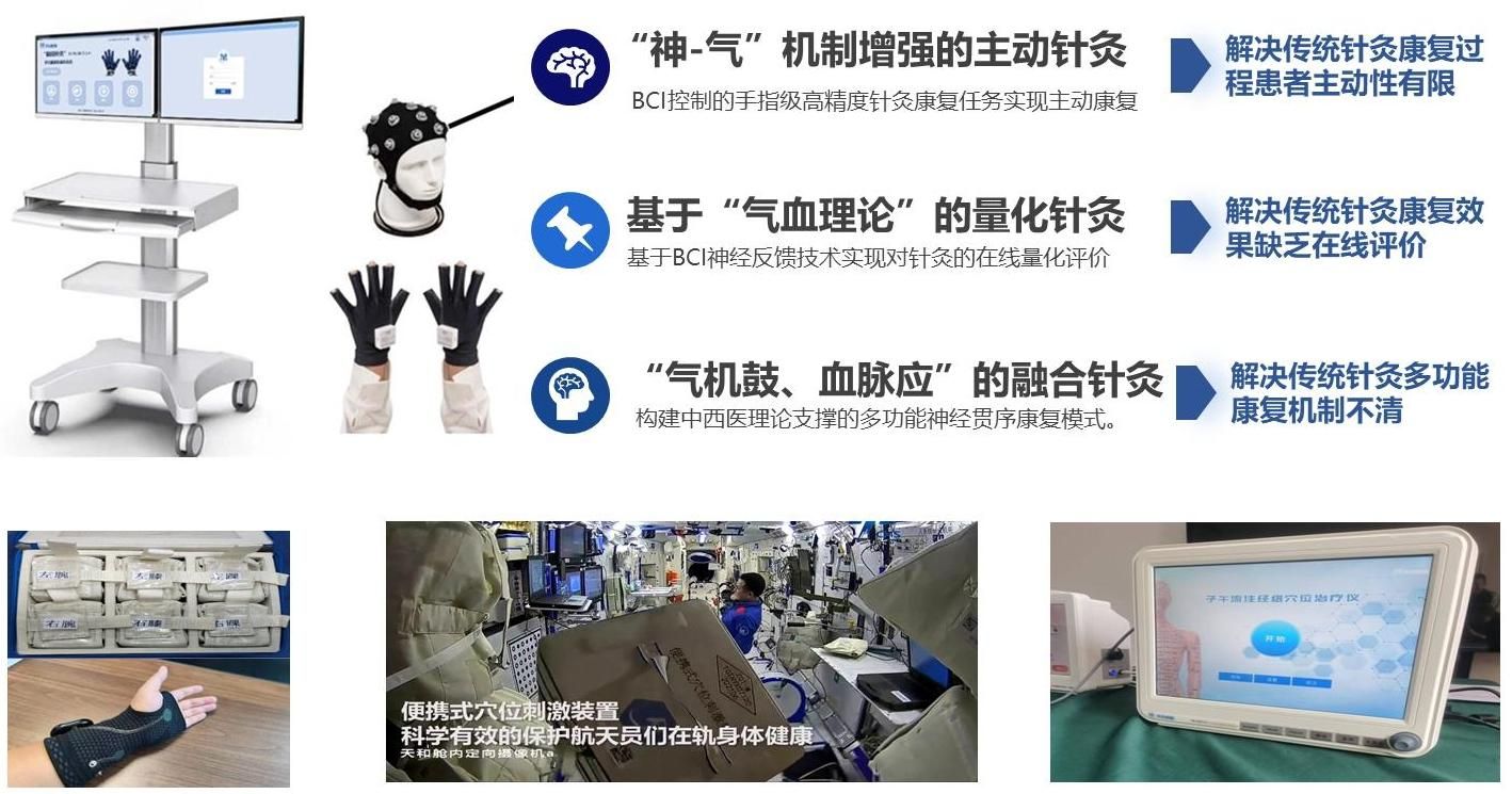 该装备立足神经可塑性理论,创新性融合“脑机接口+智能穿戴式针灸”技术,针对传统针灸治疗中患者大脑主动参与度不足,以及“针灸得气”缺乏实时量化评价等关键问题,构建了可复制、可推广的“中医脑机接口”新技术与装备平台。