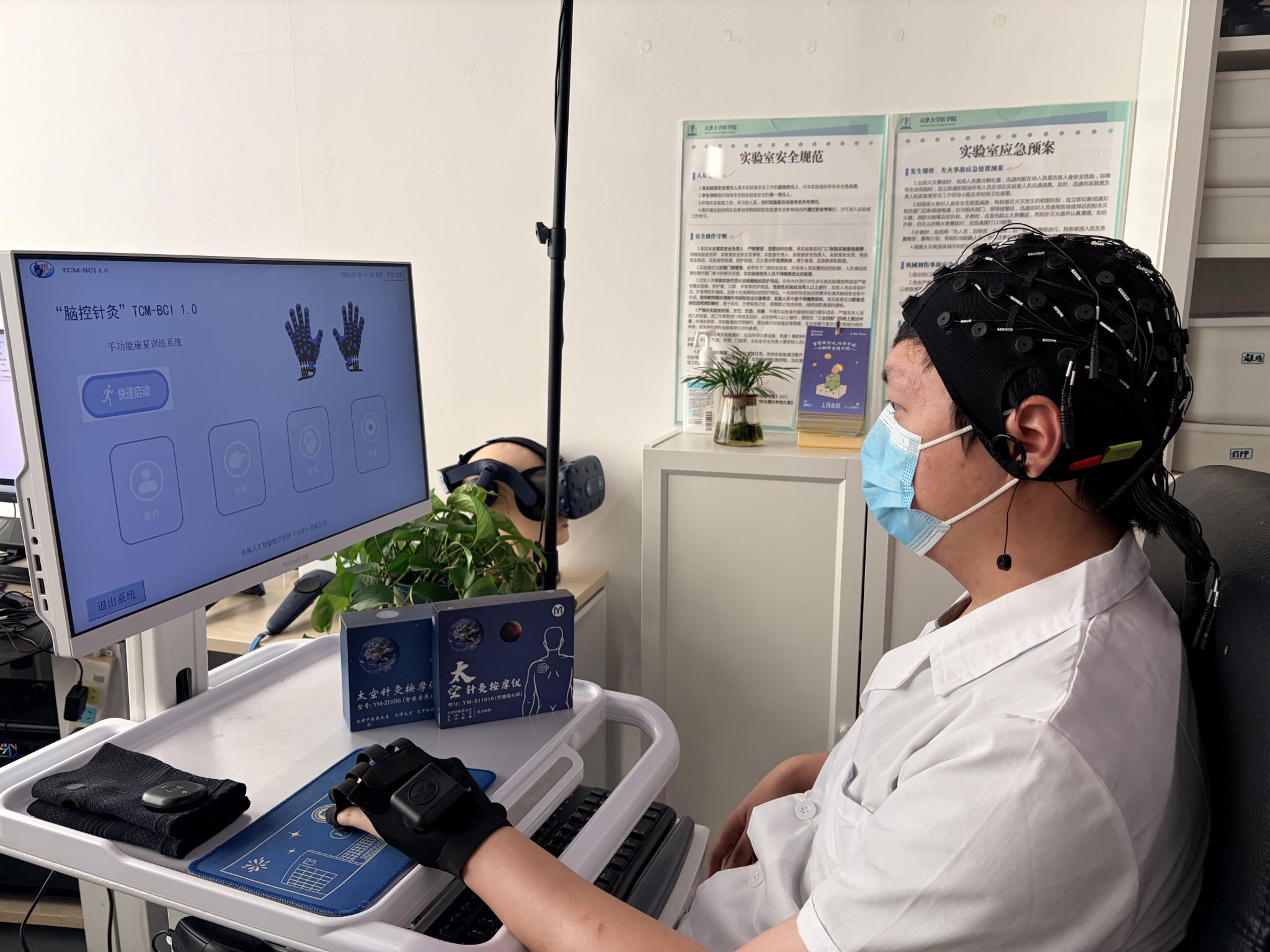 谈及该装备未来的应用前景,周鹏指出:“它的应用场景非常明确。首要目标是用于脑卒中、脑外伤、脊髓损伤等神经损伤疾病,以及手外伤导致的手指关节感觉和运动功能障碍患者的康复。”此外,该装备在认知障碍康复方面也展现出潜力,未来可用于中风患者、肿瘤患者、老年痴呆患者的“脑机+针灸”康复治疗与训练。