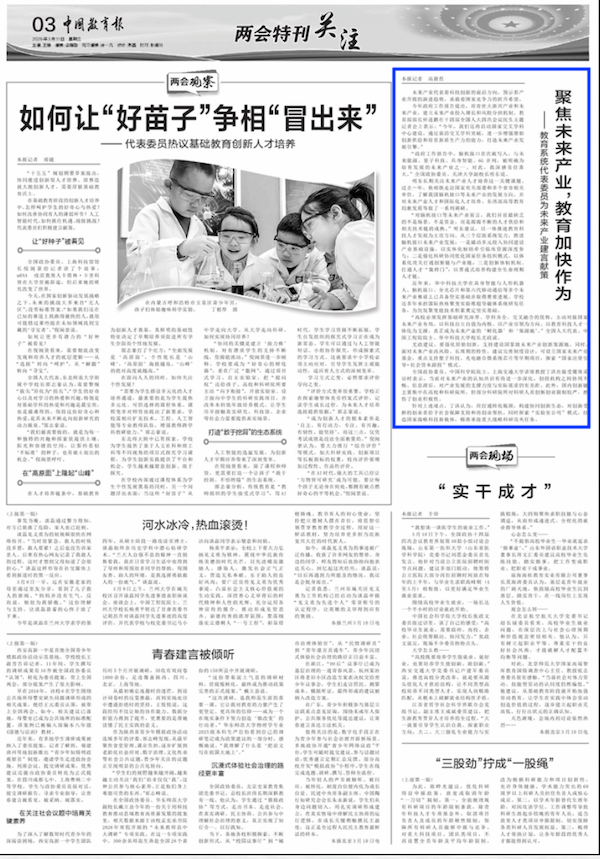 “高校必须发挥基础研究深厚、学科齐全、交叉融合的优势,主动对接国家未来产业布局,以科技自立自强为内核、以产业引领为方向、以教育科技人才一体化为支撑,真正成为未来产业的‘孵化器’和‘策源地’。”全国人大代表、中国工程院院士、华中科技大学校长尤政说。