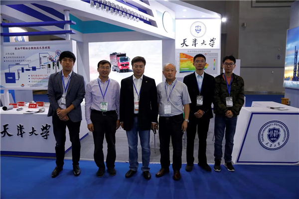 姚春德教授展出了柴油甲醇二元燃料燃烧技术及其应用,该技术充分利用甲醇特性,在压燃式发动机上实现与柴油共燃,不需要尿素辅助可以满足国家严格的排放法规要求,不但大幅度简化了复杂的后处理装置,还降低了使用成本,给国家打赢蓝天保卫战提供了有力的支持,也为内燃机环保和节能创出一条崭新路线。该技术历经十余年潜心研究,得到国家自然基金委和科技部,特别是工信部的大力支持,目前已经应用到重型压燃式柴油卡车,船舶和内燃机车。采用该技术的升级的发动机动力足,排放好,得到用户好评。目前已有国内多个企业合作推广,在此次洽谈会上也吸引了众多国外企业洽谈合作,要将我校开发的这一科研成果向全球推广。
