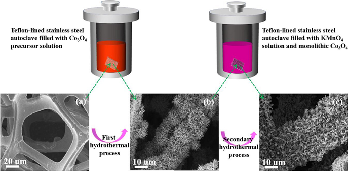 天津大学环境学院刘庆岭教授团队(catalysis.tju.edu.cn)针对当前VOCs气体催化转化存在问题,利用泡沫镍的三维结构、多孔道和良好的传热等特性,通过原位生长的方法,合成了以泡沫镍为基质,钴锰氧化物为活性组分的新型整体式催化材料(图1),所开发催化剂有效克服了传统整体式催化剂活性组分易脱落难附着的弊端,大大提升了催化转化效率及稳定性,相关研究成果发表在环境工程领域国际高水平期刊Applied Catalysis B: Environmental(2020, 265, 118552。影响因子14. 229)上。该系列材料的催化性能对多种VOCs表现出优异的催化转化效果,为非贵金属型整体式催化材料在VOCs领域的工业应用开辟了新路径,对于突破整体式催化剂技术、推进整体式催化剂在大气治理领域的实际应用具有重要意义。