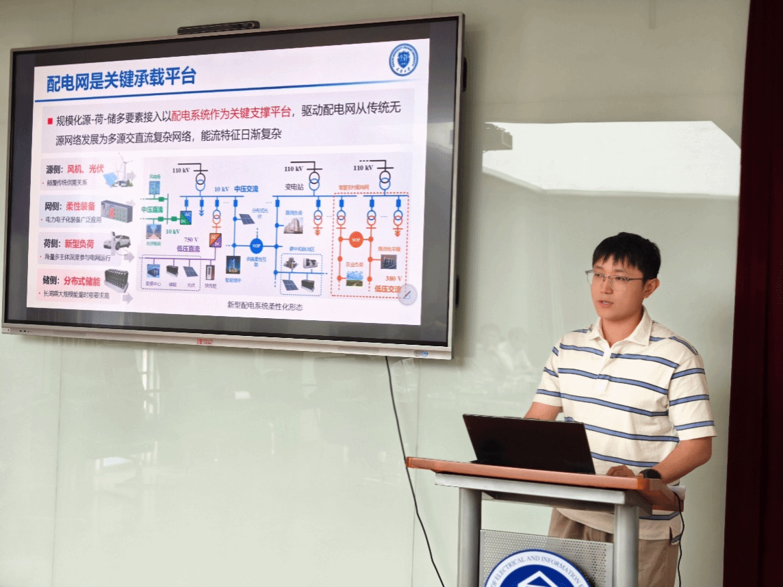 围绕着新型电力系统的主体,王成山教授课题组张浩博博士做了题为《新型电力系统边缘智能控制技术》的报告,针对双碳目标下源-荷-储新要素增长致配电网调控难、量测数据利用不足等问题,他提出海量数据压缩、分布式电源就地控制、多边缘区域协同控制等边缘智能控制技术,构建 “云-边-物” 仿真平台,还在天津蓟州光伏配电网示范应用,有效提升配电网智能化调控水平与运行稳定性。