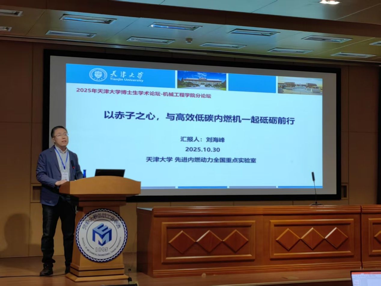 刘海峰教授作了题为《以赤子之心,与高效低碳内燃机一起砥砺前行》的专题报告。通过回顾科研经历,分享了在博士阶段面对挫折时的心态调整方法与科研突破思路,强调保持好奇心和想象力的重要性,鼓励同学们在科研道路上持之以恒。报告深入阐述了内燃机燃烧新技术的研发路径与成果转化情况,展望了高效低碳内燃机的未来发展方向,提出科研工作应积极服务"双碳"战略等国家重大需求,推动产学研深度融合。