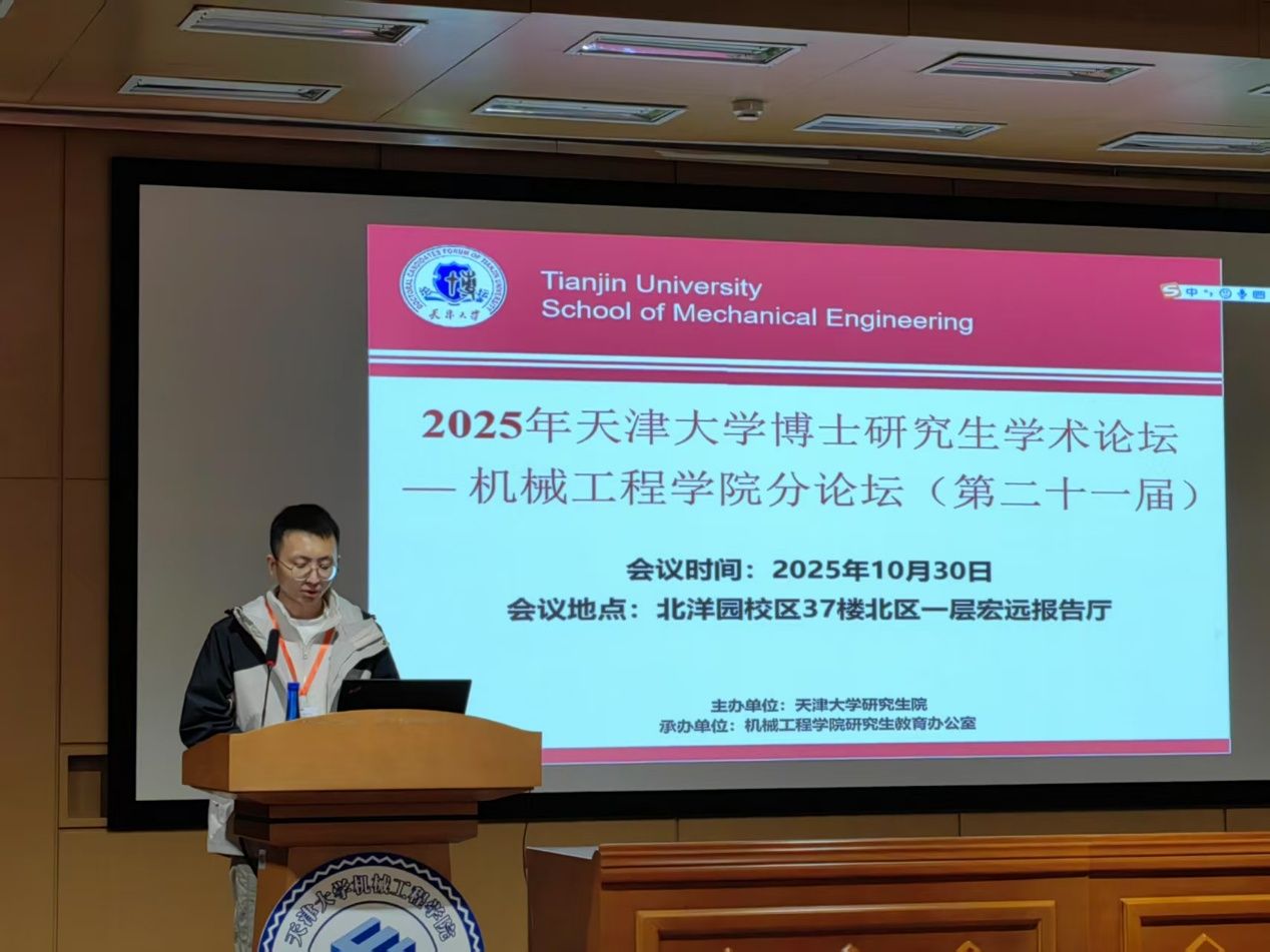 天津大学机械工程学院始终将博士生培养质量作为工作重点,高度重视博士生学术交流平台建设。为促进跨学科学术交流,2025年10月30日,学院在北洋园校区37教学楼宏远报告厅成功举办第二十一届博士生学术论坛。本届论坛秉承"'机'思广益,求是创新"主题,涵盖机械工程、力学、动力工程及工程热物理三个一级学科。