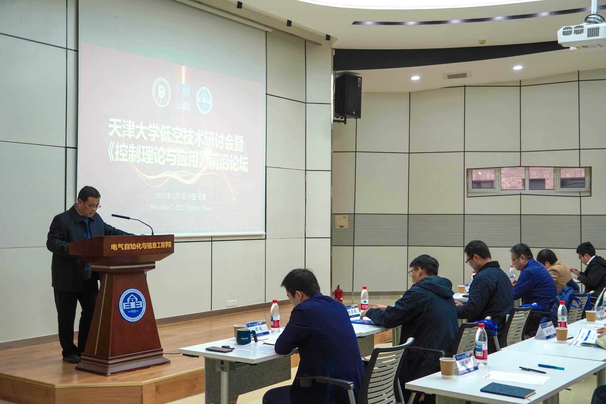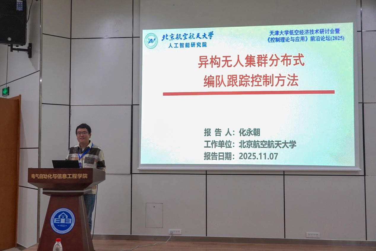 2025年11月7日,天津大学低空技术研讨会暨《控制理论与应用》前沿论坛在天津大学卫津路校区成功举行。论坛以“共襄百卅盛典,擘画低空新篇”为题,旨在为专家学者搭建一个高水平交流平台,开展低空技术与工程的基础理论和关键技术讨论,为培养具有创新意识、能够支撑低空技术体系和新兴产业发展的高素质复合型人才明方向、立标杆。论坛邀请《控制理论与应用》主编,华南理工大学裴海龙教授,浙江大学许超教授、西北工业大学刘贞报教授、天津尚飞航空科技有限公司孙凤琴工程师及北京航空航天大学化永朝副教授作专题报告。天津大学电气自动化与信息工程学院院长谭超,天津市智能无人集群技术与系统重点实验室主任左志强教授参加会议。论坛由天津大学自动化系主任胡超芳教授主持。