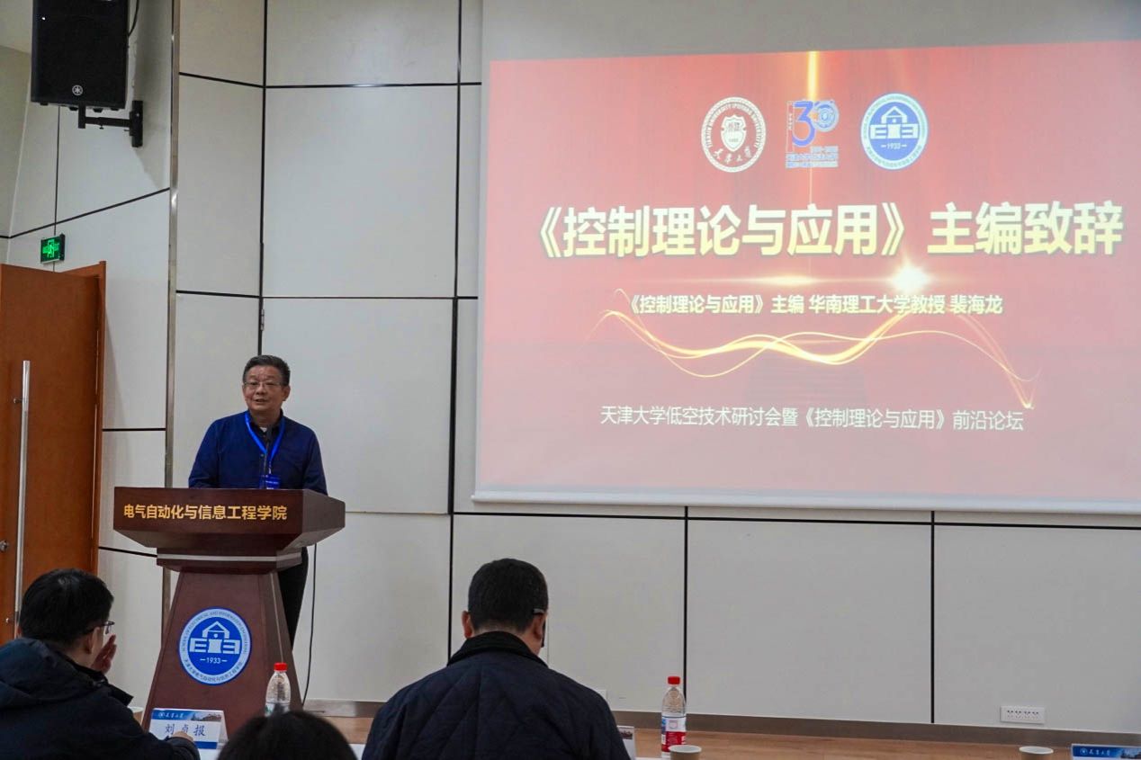 《控制理论与应用》主编,华南理工大学自主系统与网络控制教育部重点实验室主任裴海龙教授介绍了期刊的学术定位与发展历程。期刊已被ESCI、EI等国际数据库收录,并入选中国科协自动化学科高质量期刊目录。为响应国家低空经济发展战略,期刊将“低空技术与工程”列为重点方向,将推出“低空飞行器智能安全控制”专刊。