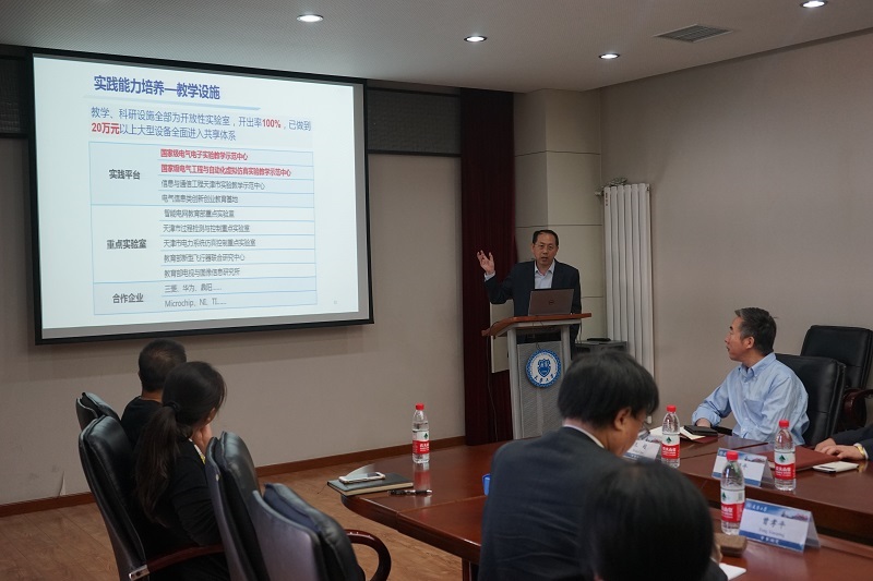 王成山院长首先简要介绍了学院基本情况,然后从实践与创新能力培养、国际视野和家国情怀、教学质量保证及教学成果与反馈等四个方面进行详细讲解。随后,曾孝平专家深度访谈学院负责人,就学院新工科建设、如何支撑学校一流大学建设、平衡教学与科研、教学评价体系、学生出国情况等内容进行了交流。