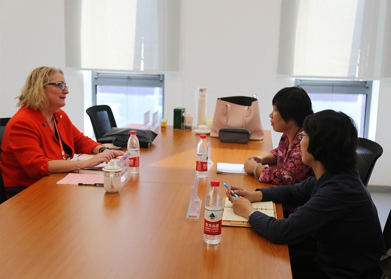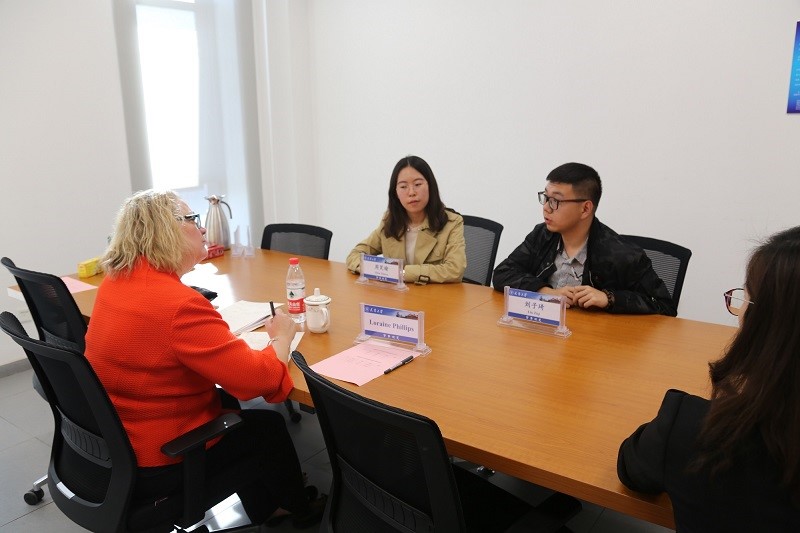 随后,Phillips女士就教师发展、学生培养、教学监督等内容与张志宏、贾欣岚两位教师进行了座谈。她询问了两位老师的工作经历,学校如何保障教师发展、推进教学改革、实现培养目标、监督评价教学等问题,讨论了双学位、通识教育以及“以学生为中心”的发展理念。张志宏、贾欣岚两位老师认真回答了专家提问,她们介绍了国家基金委、天津市以及学校的各种项目,通过科研项目、教改项目等促进教师发展、推进教学改革;通过修订培养方案、完善课程设计,提供科学合理的必修、选修课程,提高学生各方面的技能;学校为新入职教师开展入职教学培训,组织专家领导听课、学生评价打分等形式监督教学;英语专业学生的修双学位有利于培养国际化的专业人才,通识教育除了本学院文化课程还提供了大量自然科学、社会管理课程;“以学生为中心”就是要考虑学生的需求,从学生的角度出发,让学生广泛参与到教学过程的方方面面。同时,两位老师介绍了自己的工作经历,表达了对天津大学、对学生、对教育事业的热爱。