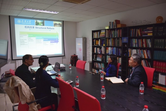 上午八点三十分,来茂德来到了卫津路校区第23教学楼212教室,认真听取了药学院《有机化学Ⅱ》课程,该课程由美籍教授Jon Antilla主讲,授课对象为2017级本科生。Jon Antilla用全英文的语言和板书进行课程的讲授,学生们认真听讲,课堂气氛融洽,当遇到疑难问题时,Jon Antilla组织学生进行验算,耐心地引导他们独立思考和分析。下课后,来茂德与Jon Antilla进行了交流,并对其授课内容和课堂情况给予了充分的肯定。