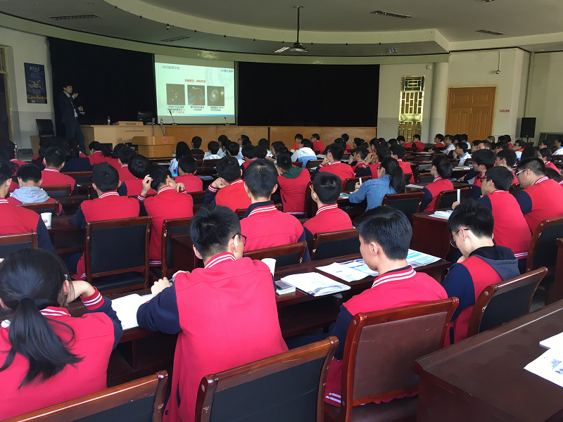 在两所中学,封皓带来题为《测控的奥妙》的科普报告。他从如何探索宇宙、探索微观世界的角度引出测控技术及仪器;又通过对天津大学研发的“纯意念控制”的人工神经康复机器人系统“神工二号”和C919座舱环境控制系统中的空气分配系统的数值仿真和优化设计的介绍,进而让学生们领略到测控技术及仪器相关方向的研究成果。他借助对迈克尔逊干涉仪和蛟龙号深水探测等相关知识的讲解,生动形象的介绍了测控的范畴和学科的内涵。封皓通过列举具体事例展示了测控技术与仪器与现实生活的密切关系,以及在国家建设中的重大意义,其深入浅出的讲解引起在场学生的浓厚兴趣,赢得全场热烈欢迎。
