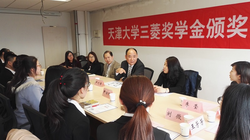 本站讯(通讯员 李岩)3月16日,天津大学三菱奖学金颁奖仪式在25教学楼C座1113室举行。出席此次颁奖仪式的有三菱商事(天津)有限公司总经理尹则棣、财务部项目经理秦学秀,天津大学管理与经济学部党委副书记李庚,学生工作办公室主任尚洁、副主任李莹,研究生指导主任高成菊,以及获得三菱奖学金的十位获奖学生。颁奖仪式由高成菊主持。