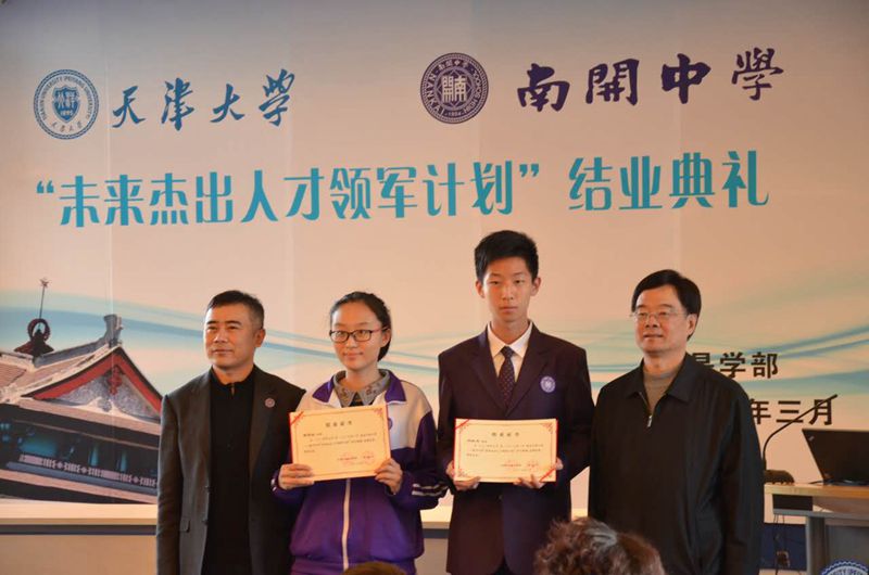 本站讯(学生记者 董玥欣)3月26日,天津大学与南开中学“未来杰出人才领军计划”毕业典礼在天津大学会议楼举行。天津大学副校长余建星、教务处副处长谷钰、经管学部主任张维、建工学院副院长丁阳、求是学部副主任罗震等以及南开中学副校长马健、潘印溪等出席仪式。南开中学 “未来杰出人才领军计划”的毕业学生及家长、天津大学指导老师等近百人参加了毕业典礼。求是学部党委书记单小麟主持仪式。