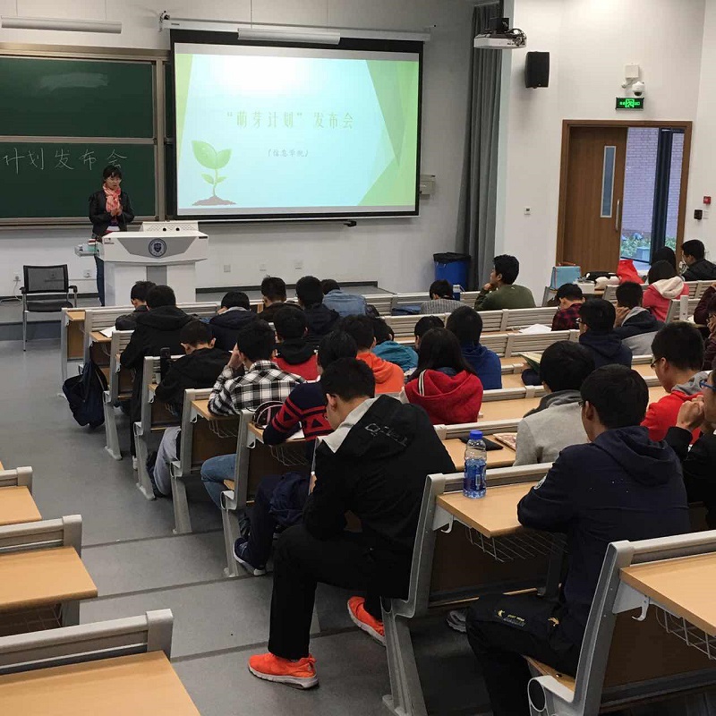 刘佳对“萌芽计划”进行了总体介绍。本科生“萌芽计划”是继本科生创新课堂后,信息学院在学生科技创新创业方面的又一探索,旨在激发学生对于专业的兴趣、对于科技前沿的热情,训练学生搜集信息、创新实践、团队合作的能力,与创新课堂“教学+实践”的形式有所区别,萌芽计划更加注重对于学生自主性、自觉性的培养,鼓励学生充分发挥想象、充分探索信息技术的前沿,不做任何限制,可以围绕无人机、3D打印、智能车、VR、深度学习等等任何方向去做大胆的尝试。对于报名上来的方案将会进行充分论证及指导,可行性高、有创意、可持续的项目都会给予硬件和资金上的支持。
