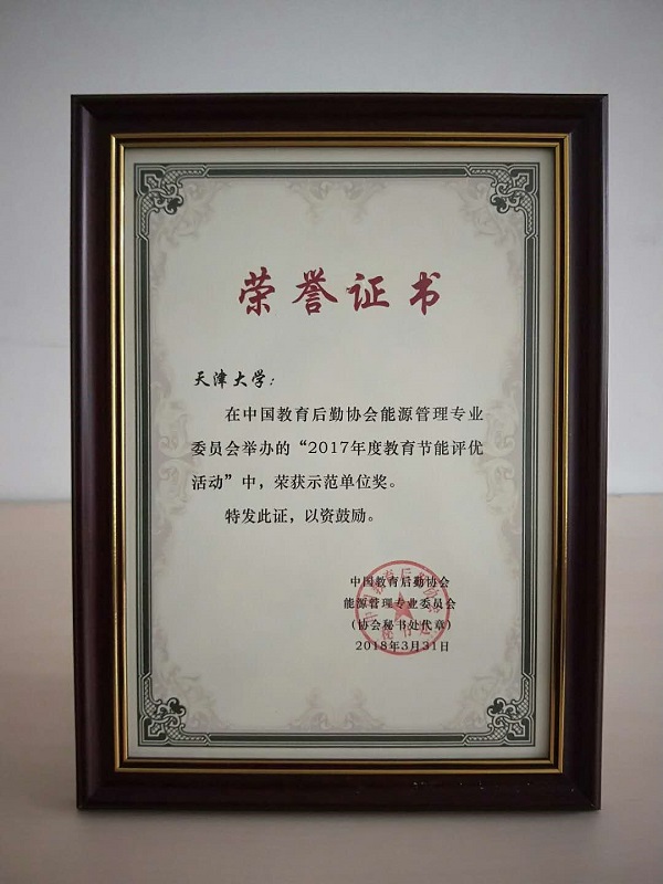 本站讯(通讯员 付永兴)近日,从中国教育后勤协会能源管理专业委员会第一届第四次全体委员大会上获悉,天津大学荣获“2017年度中国教育节能示范单位”奖,全国有北京大学、上海交通大学等共15所高校得此荣誉。