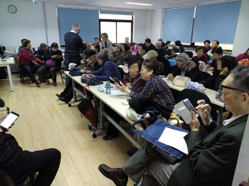 讲座受到老同志们的欢迎,40余位老同志冒雨前来,会场的座位不够了就搬个凳子坐在过道听。