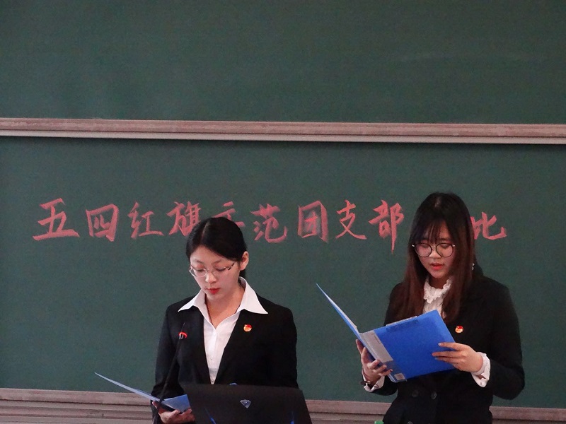评比开始前,全体成员起立奏唱中国共青团团歌《光荣啊!中国共青团》。随后,五个参评团支部依次上台展示。各团支部在介绍了支部建设情况、新媒体宣传及开展的大调研活动等内容后,纷纷展示出由团支部成员一同制作的结合专业特色的创意作品。机械工程团支部创作的小诗带领我们畅想新时代、感受青年人的担当;电工电子一班团支部结合以电路图为蓝本创作手绘图;电工电子二班团支部以“中国梦 我的梦”为主题制作了有支部成员宣誓的手绘书签;茅以升班团支部则用一张张别墅设计图拼出历次团日活动的新模型;“四十二颗红星熠熠 原把青春贡献给党 晚风吹过海棠树下的我 心有理想 且勇敢追”,化工材料团支部一首改编歌曲,写尽同学们在北洋园中坚定理想、执着追梦的坚持。最终,电工电子一班团支部获评一等奖,化工材料团支部获二等奖,电工电子二班团支部、机械工程团支部及茅以升班团支部获三等奖。