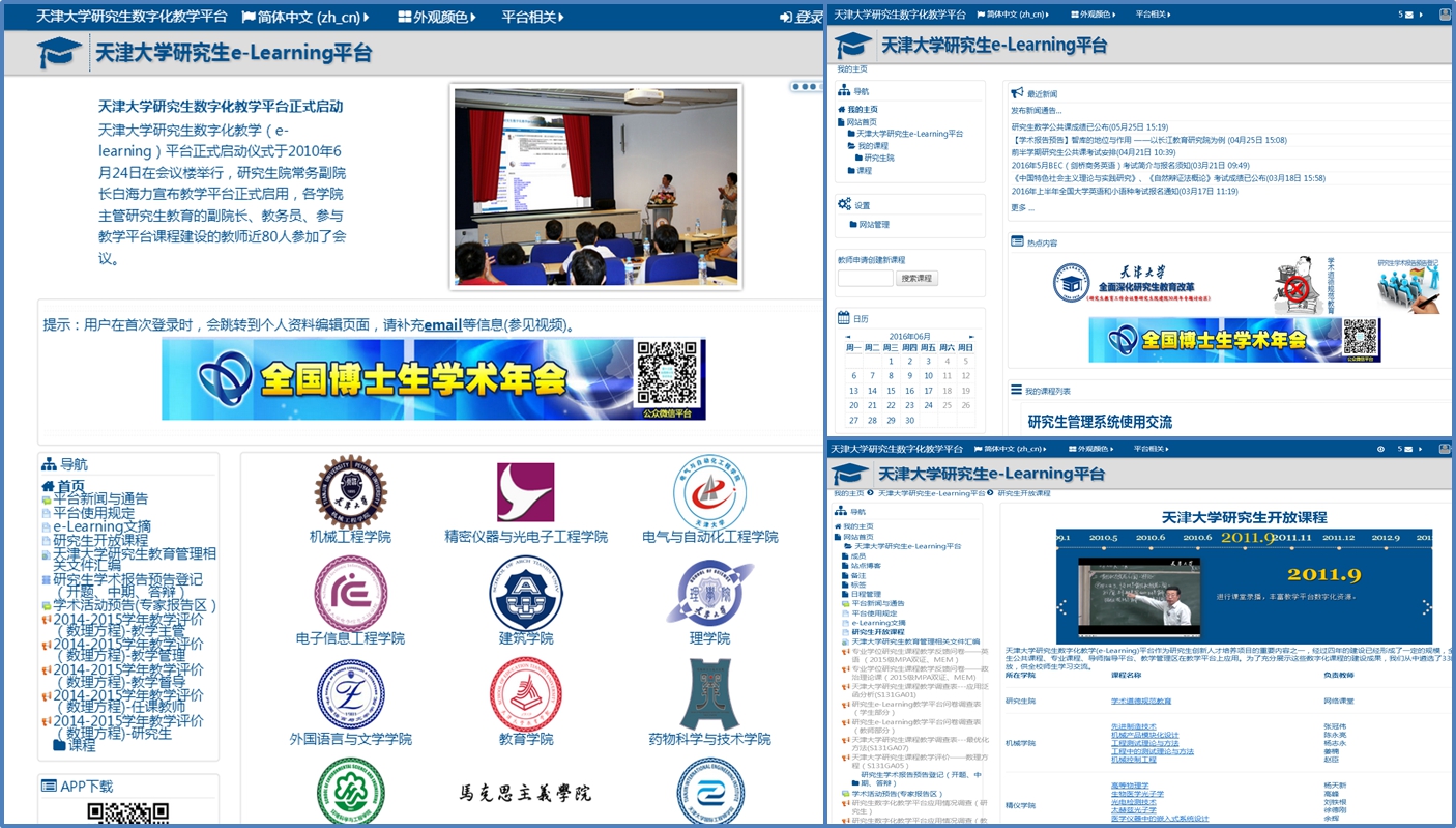 据天津大学教育学院院长闫广芬介绍,经过多年的建设实践,教学平台已形成相当规模,有500余位教师通过教学平台开展教学,建设课程500余门。线上课程《学术道德规范教育》成为了全校博士生的必修课;《硕士英语》课程全部实行网络在线考试;2015年起天津大学实施博士研究生招生“申请-审核”制,教学平台成为了外国语水平的考核平台。教学平台被天津市评选为“优秀教学成果”二等奖。