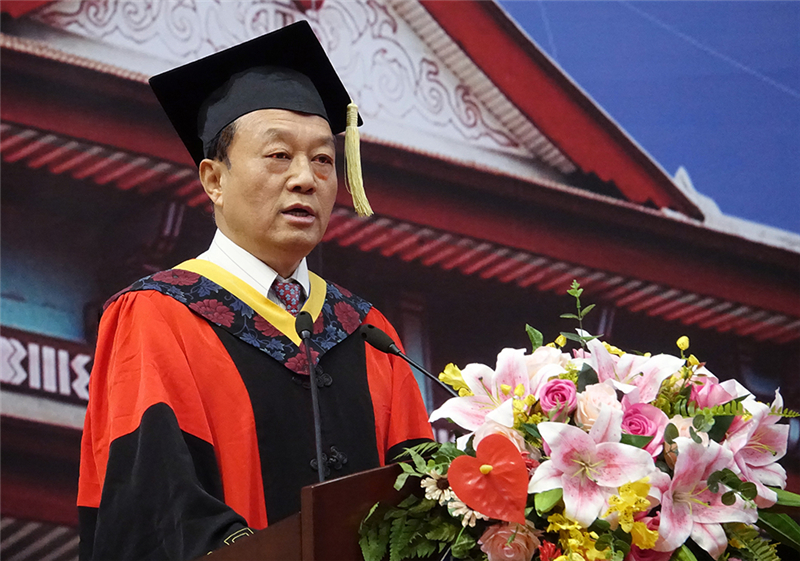 王书新鼓励毕业生们要主动设计自己的人生道路,“仰望星空,脚踏实地,服务社会,服务大众。去创造辉煌的成就,以栋梁之才回报国家。”