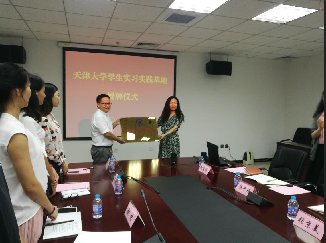 授牌仪式上,刘梅向师生们介绍了天津中心整体情况以及在党建、业务建设、专利服务、基础建设等方面的工作情况和取得的成绩,肖述虎介绍了天津大学的历史发展、学科设置、就业情况等内容。刘梅、肖述虎代表双方进行学生实习实践基地的授牌。