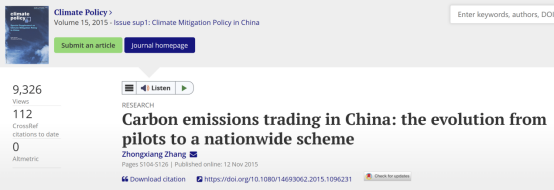 张中祥从上世纪90年代在荷兰格罗宁根大学法学院和经济学院任职时起就呼吁在全球实施碳排放交易这一市场机制。早在1998年,他就与美国环境和资源经济学家协会理事长TomTietenberg教授等欧美学者应邀为联合国贸发会议(UNCTAD)撰写、1999年由联合国正式出版的《温室气体排放交易国际规则》的报告,1998年美国未来资源研究所(RFF)曾以Emissions Trading 101对这个联合国报告做过报道;他在法学和经济学国际杂志Journal of World Trade上发表了全球该领域第一篇论述温室气体排放交易和世界贸易的论文;在美国东西方中心任职资深研究员时,张中祥应邀与包括已故Peter Bohm(斯德哥尔摩大学经济学教授、1985年Elsevier出版的著名Handbook丛书作者), Wallace Oates(美国国家科学院院士、世界顶级公共财政和环境经济学家)和David Pearce(首位欧洲环境和资源经济学家学会终身成就奖获得者,为张中祥1997年由英国Edward Elgar出版、入选“环境经济学里程碑”丛书的英文独著的封面写了荐言)在内的其他5位欧美顶级经济学家对欧盟碳排放交易体系提出改进建议。